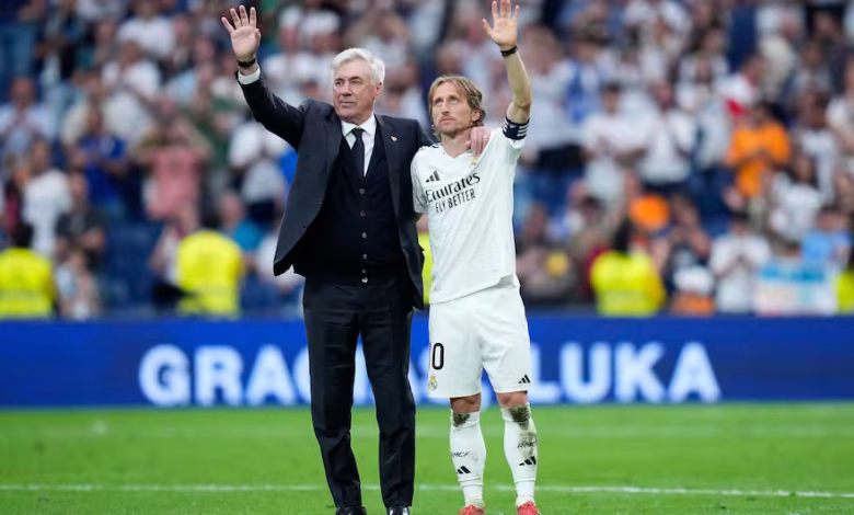 Real Madrid vivió una jornada repleta de emociones en su estadio Santiago Bernabeu con las despedidas del croata Luka Modric como jugador y del italiano Carlo Ancelotti como director técnico. Además, en un partido por la última fecha de la Liga española, el equipo merengue derrotó por 2 a 0 Real Sociedad por 2-0, con dos nuevos tantos del francés Kylian Mbappe, quien se consagró goleador máximo de la temporada con 31 goles.