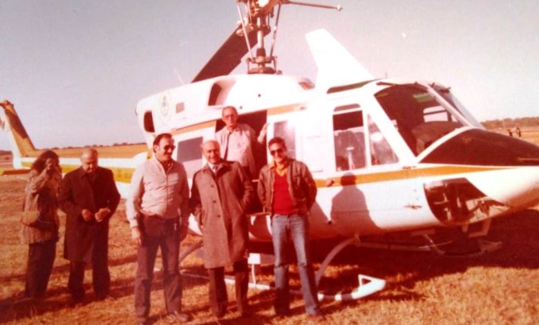 Foto portada: Juan Manuel Fangio estuvo el 24 de junio de 1979 arribando al Autódromo de Resistencia en un helicóptero desde el Aeropuerto Internacional