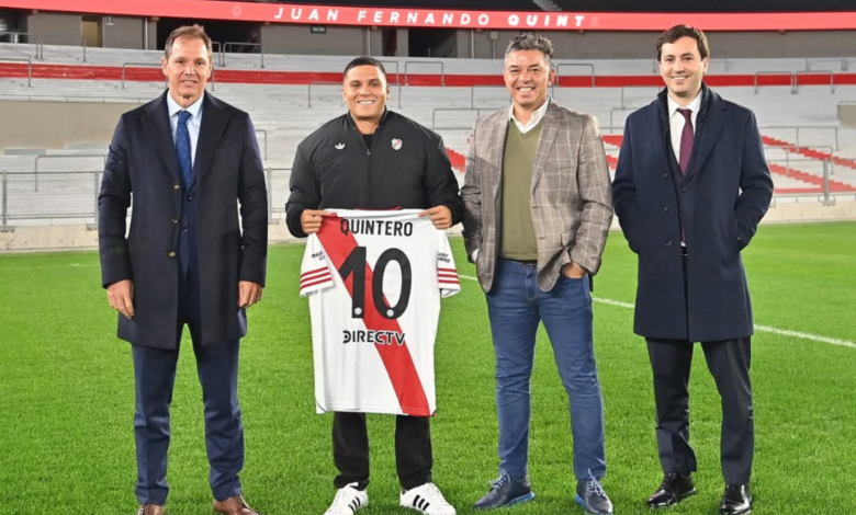 JUANFER QUINTERO volvió a River y comenzó su tercer ciclo: el colombiano fue oficializado en redes sociales y firmó su contrato hasta diciembre de 2027.