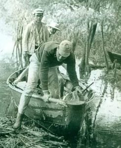 Recorriendo zonas difíciles a bordo de una canoa, para asistir a gente que lo neceistaba.