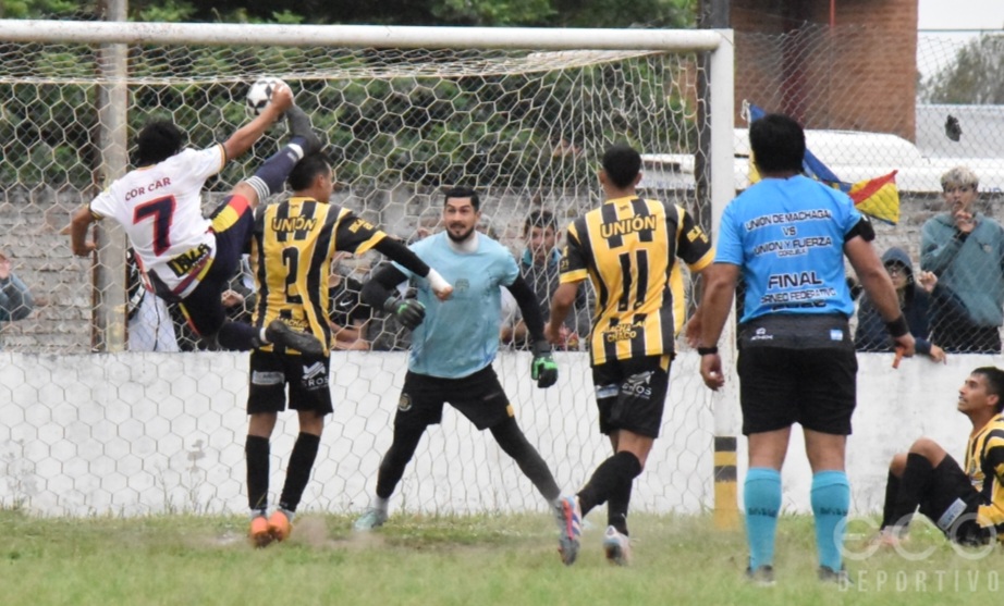 Unión no pudo hacer prevalecer su localía y empató 1 a 1 con Unión y Fuerza en el primer duelo correspondiente a la final del Torneo Federativo, que se disputó ante una multitud en el estadio Mario “Pibe” Guastalla de Machagai. Federico Monzón anotó para el “aurinegro” y empató Leo Diloff, de penal, para el “tricolor”.