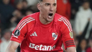 AMDEP8503. SAO PAULO (BRASIL), 30/10/2025.- Ramón Sosa (i) y Allan de Palmeiras celebran un gol este jueves, en el partido de vuelta por la semifinal de la Copa Libertadores entre Palmeiras y LDU Quito en el estadio Allianz Parque, en Sao Paulo (Brasil). EFE/ Isaac Fontana