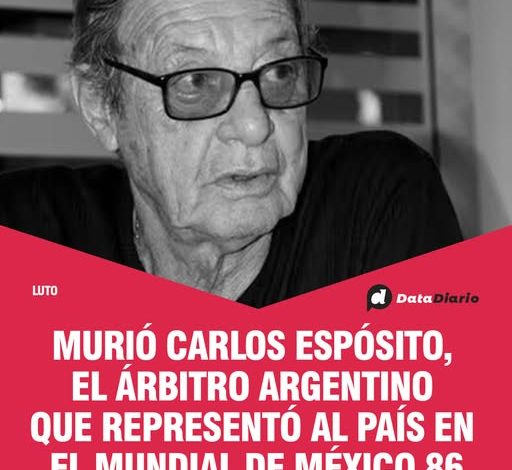 La noticia fue confirmada este viernes por la Asociación Argentina de Árbitros (AAA) a través de un comunicado en su cuenta oficial de X: “Lamentamos informar el fallecimiento de Carlos ‘Coco’ Espósito. Árbitro mundialista (México 1986), con una vasta y reconocida trayectoria nacional e internacional, Fue sin dudas un referente de nuestro arbitraje, además de un gran amigo y compañero», indicaron.