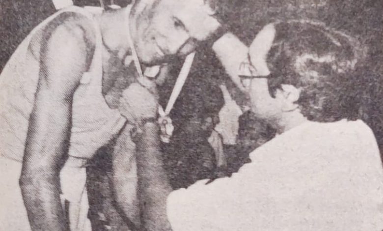 Foto portada: Gabriel Ponce ganador de la competencia recibe la medalla obtenida, la cual es colocada por el tesorero del Círculo de Periodistas Deportivos Martin Pedro Vera..