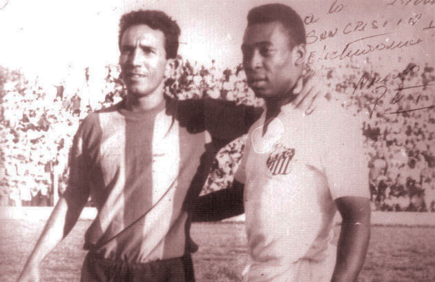 FOTO PORTADA de Pelé acompañado de Leonardo Domingo Rotger, que ese día jugó como recuerzo del decano