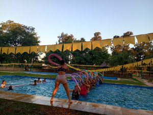 Las jornadas de “Aerobic en el Agua” se llevan a cabo los días martes y jueves por la tarde, con una duración de una hora, una vez finalizada la colonia de verano. La actividad está a cargo de la Profesora Cynthia Moreno, quien guía cada encuentro con profesionalismo, compromiso y dedicación.