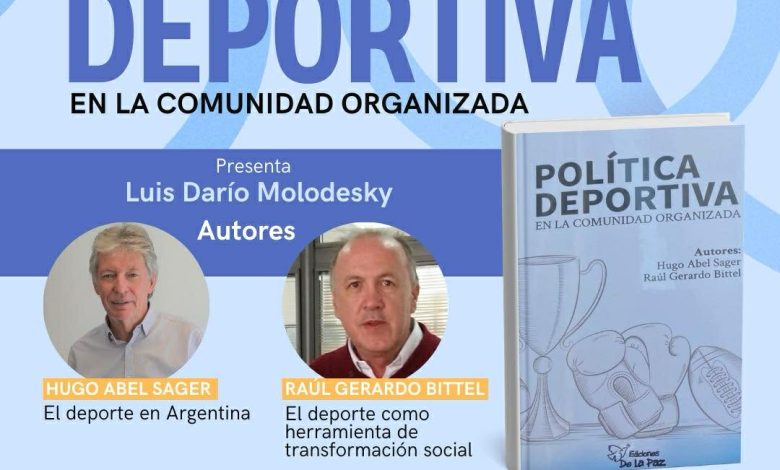 El jueves 26 de febrero será presentado en socidad, el libro «Política Deportiva en la comunidad organizada», cuyo autores tienen una reconocida trayector provincial y nacional. Se trata de Hugo Abel Sager y Raúl Gerardo Bittel.