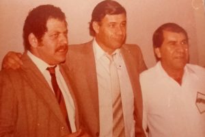 Luis Darío Molodezky con Víctor Hugo Morales y Ramón Gonzales en 1982, luego del Mundial España 1982 en el Club del Progreso