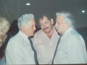 Luis con Adolfo Pedernera y el caracaturista Arancibia en la fiesta de la Liga de Veteranos en los 90