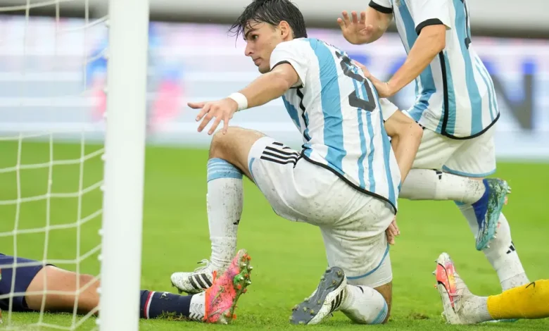Pablo Solari, a los 3 minutos del primer tiempo, abrió la cuenta para el equipo de Javier Mascherano, pero a los 42 de la etapa inicial igualó Diego Gómez y Alan Núñez marcó el segundo tanto de los guaraníes a los 70. Thiago Almada, a los 84, anotó la igualdad de penal, pero Enso González marcó un golazo a los 90. Cuando todo parecía perdido para la Albiceleste, Federico Redondo estampó el empate definitivo en tiempo de descuento.